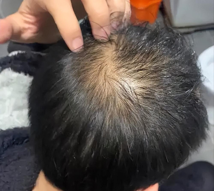 后来医生推荐他用米诺地尔,刚开始那一个月,每天掉120到150根头发,把他吓坏了。